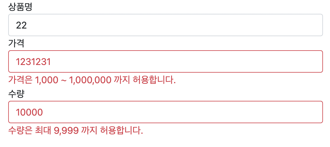 하지만 위 방법의 단점은 상품 이름은 필수입니다.라는 에러 메세지를 모두 직접 입력해야 한다는 것이다.