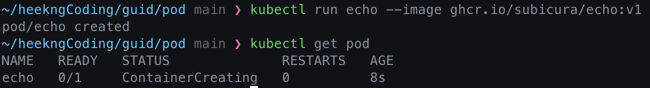 kubectl run echo --image ghcr.io/subicura/echo:v1