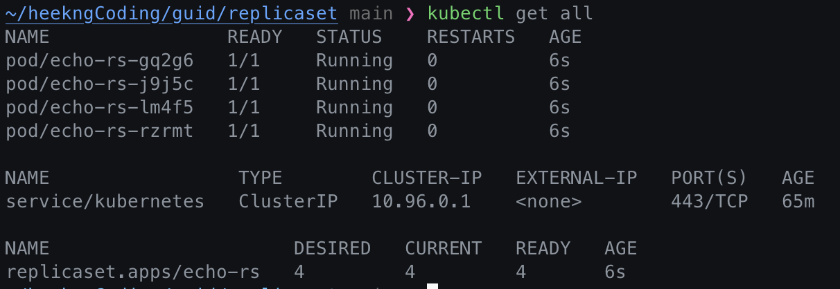하지만 ReplicaSet Controller가 작동한다는 점만 유의하면 됩니다.