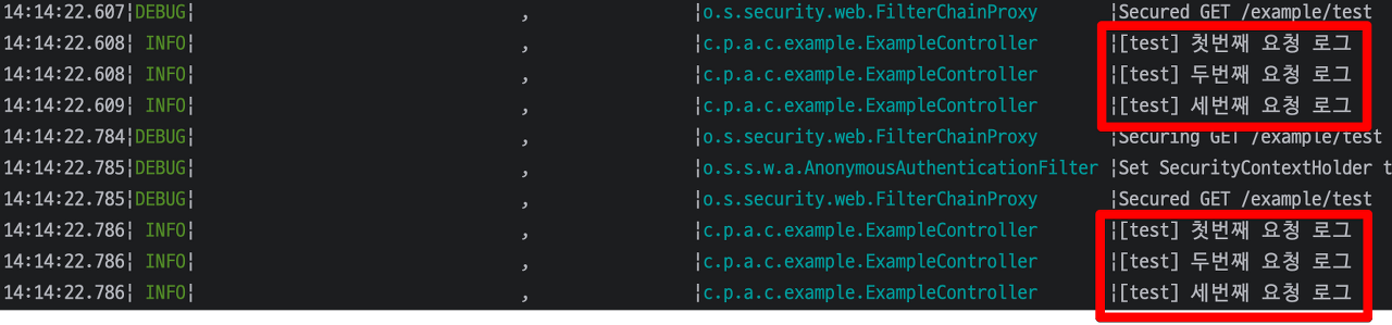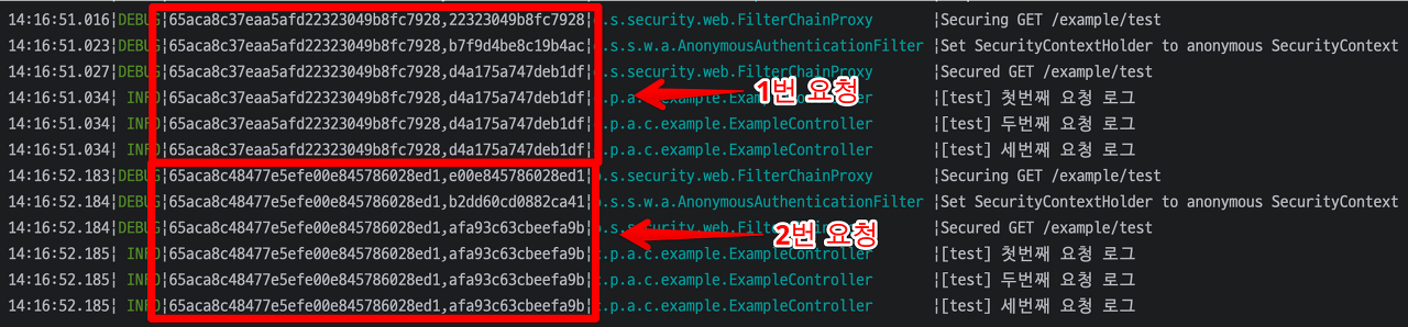 위와 같이 로그에서 두개의 요청을 구분할 수 있습니다.