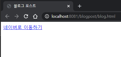 위와 같이 <a>태그 안에 href속성으로 네이버의 주소를 넣어주고, 출력되는 문자는 "네이버로 이동하기"로 지정했다.