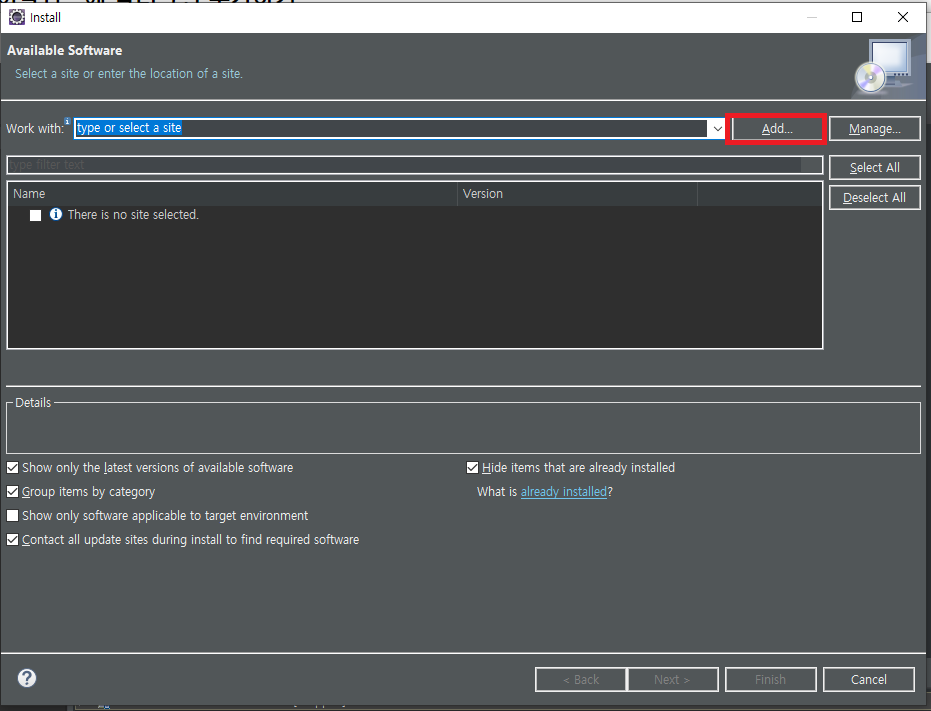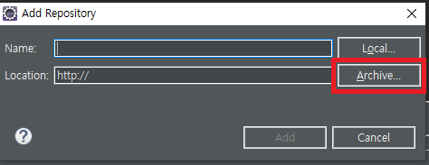 Add - Archive 를 클릭하고 다운로드받은 tern.repository-1.2.1.zip을 선택한다.