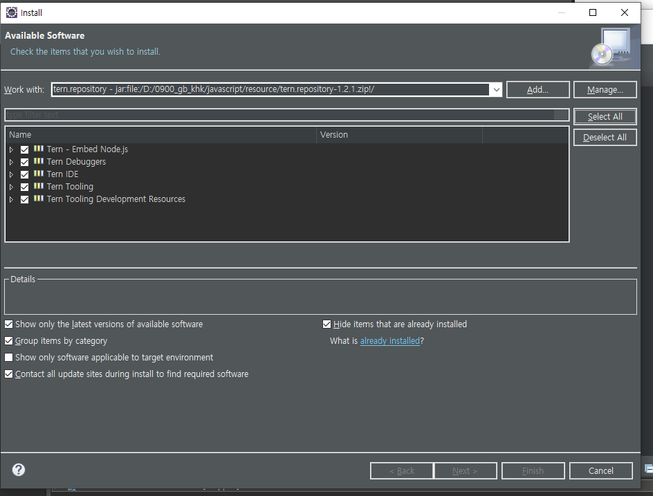 위 주소로 접속하여 tern.repository-1.2.1.zip 을 다운로드 받아준다.