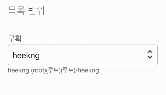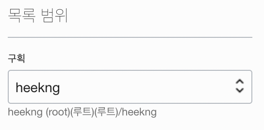 좌측 하단의 목록범위에 구획을 1번 단계에서 생성한 구획으로 선택