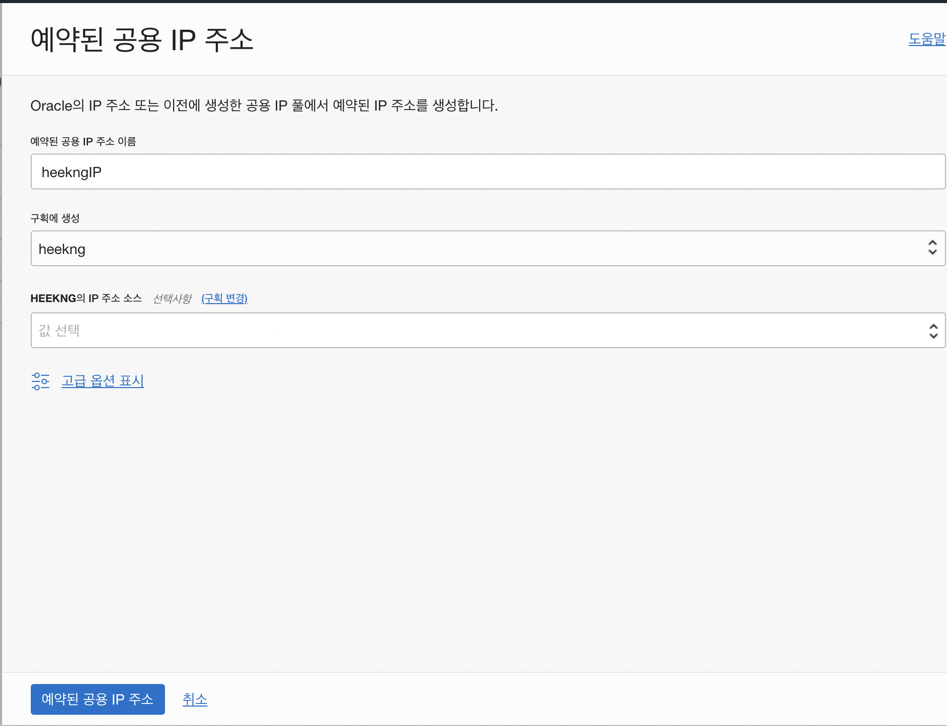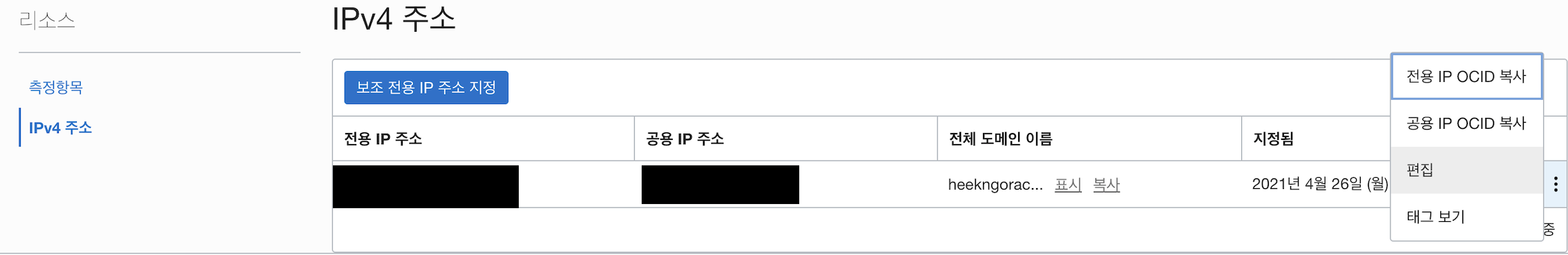 4. 고정(공용)IP생성 후 할당