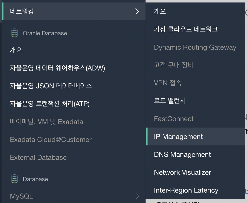 좌측 상단 메뉴의 네트워킹 - IP Management 클릭