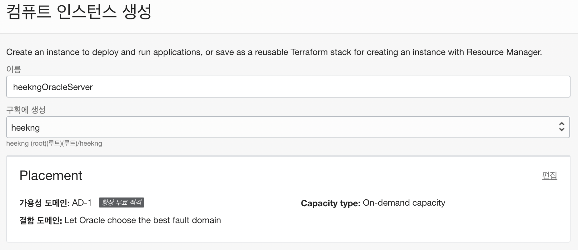 구성: VM.Standard.E2.1.Micro (건들지 않음)