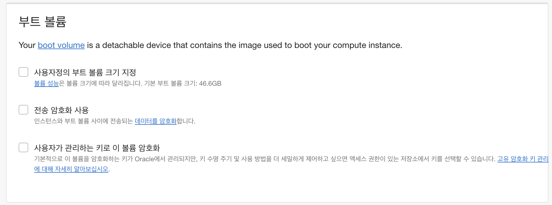 부트 볼륨의 경우 따로 건드는 부분 없습니다.