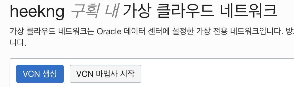 인터넷 접속을 통한 VCN 선택 후 VCN마법사 시작 클릭