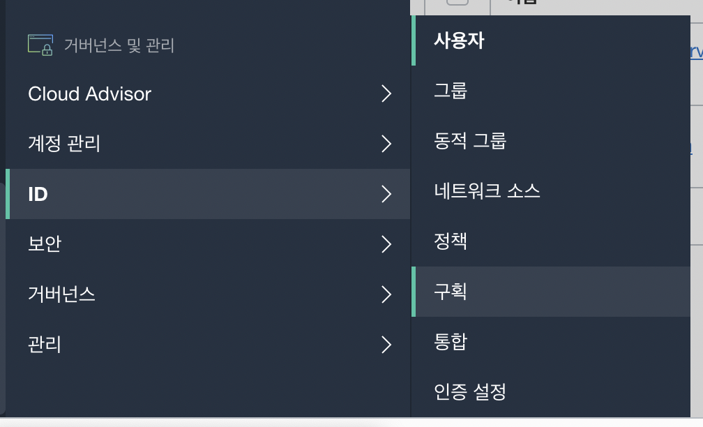 좌측 상단 메뉴에서 ID - 구획 으로 들어갑니다.