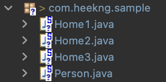 위처럼 Person클래스를 생성하고, Person객체를 필드로 가지고 있는 Home클래스를 3가지 만들었다.